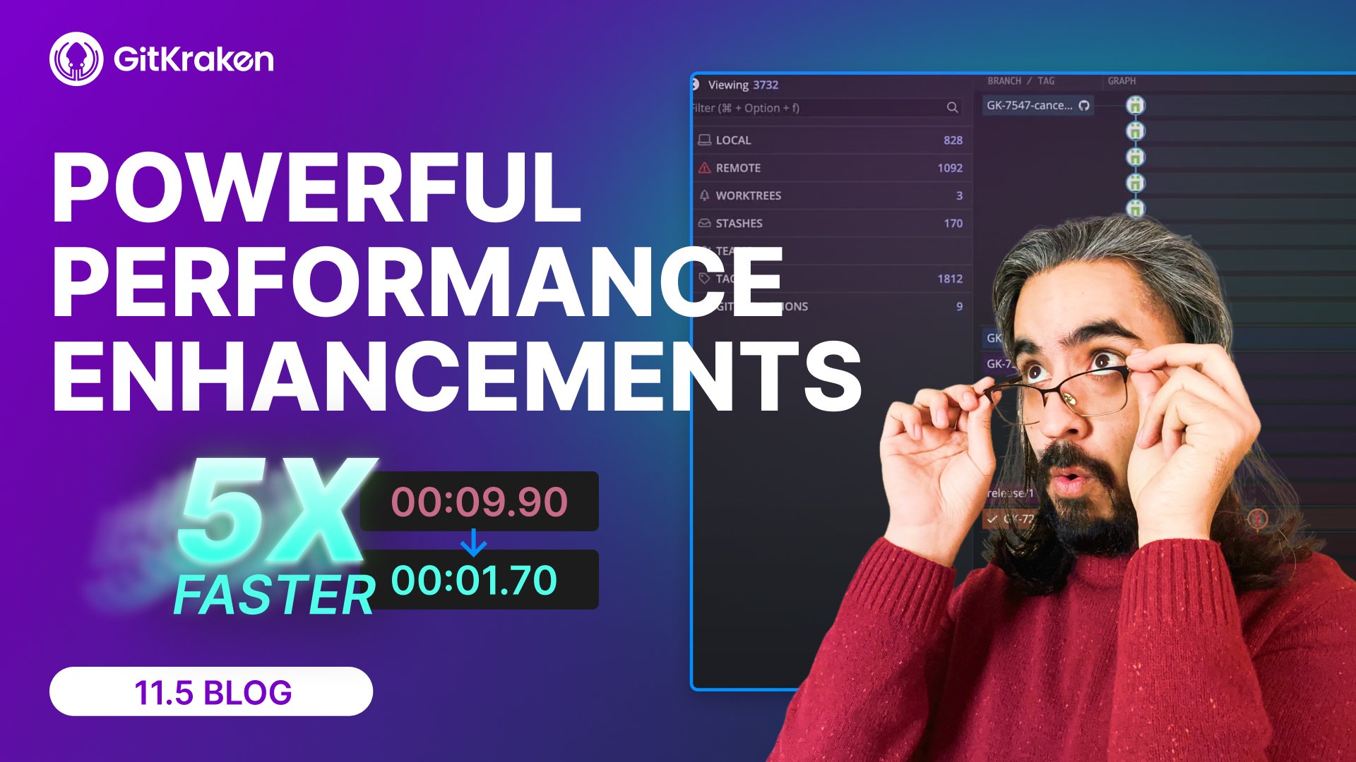 The bottom line: We fixed the slow parts. GitKraken Desktop 11.5 is faster where it counts. No promises, just proof.