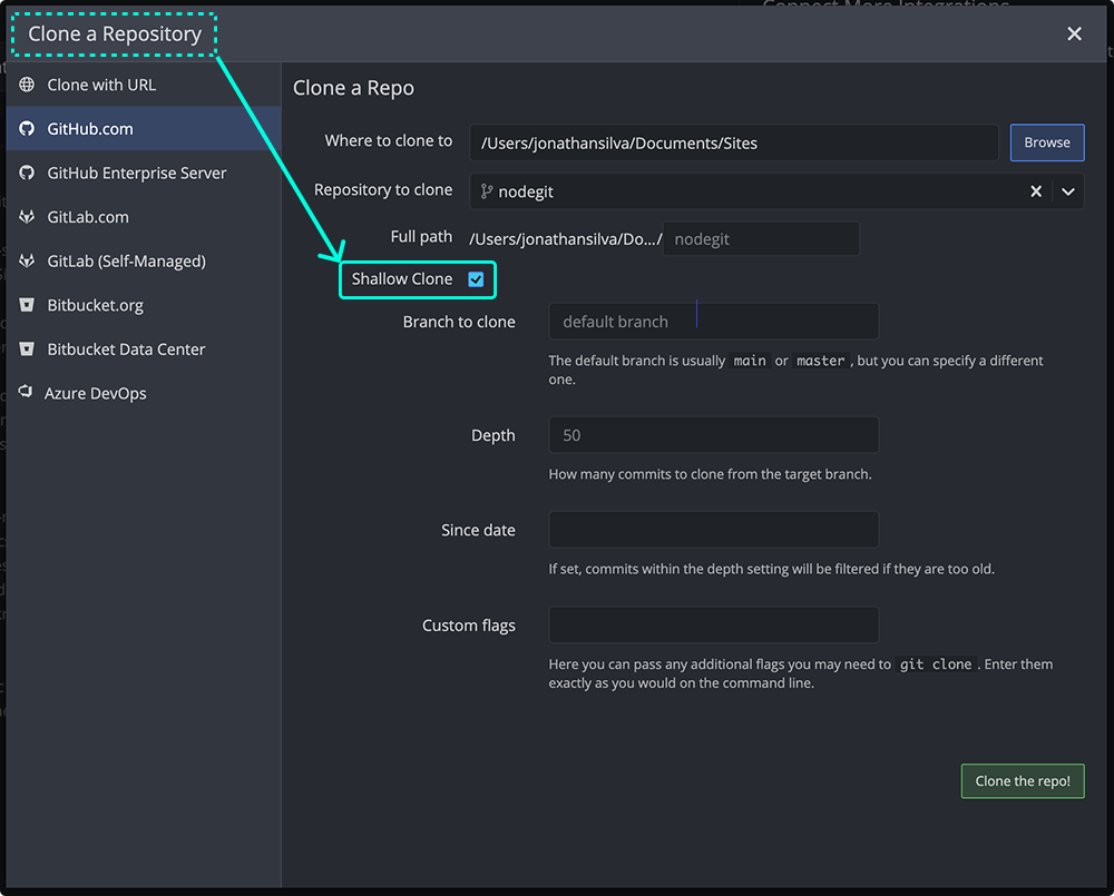 You’ll see the option right in the clone dialog. One checkbox. Faster clones. Whether you’re running CI pipelines, evaluating a new project, or just need the latest code, shallow clones get you working faster.