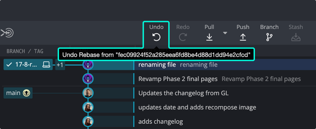 The solution: GitKraken Desktop’s undo button just got significantly more powerful. You can now undo and redo rebases, including interactive rebases, cherry-picks, and any composed commits from GitKraken AI.