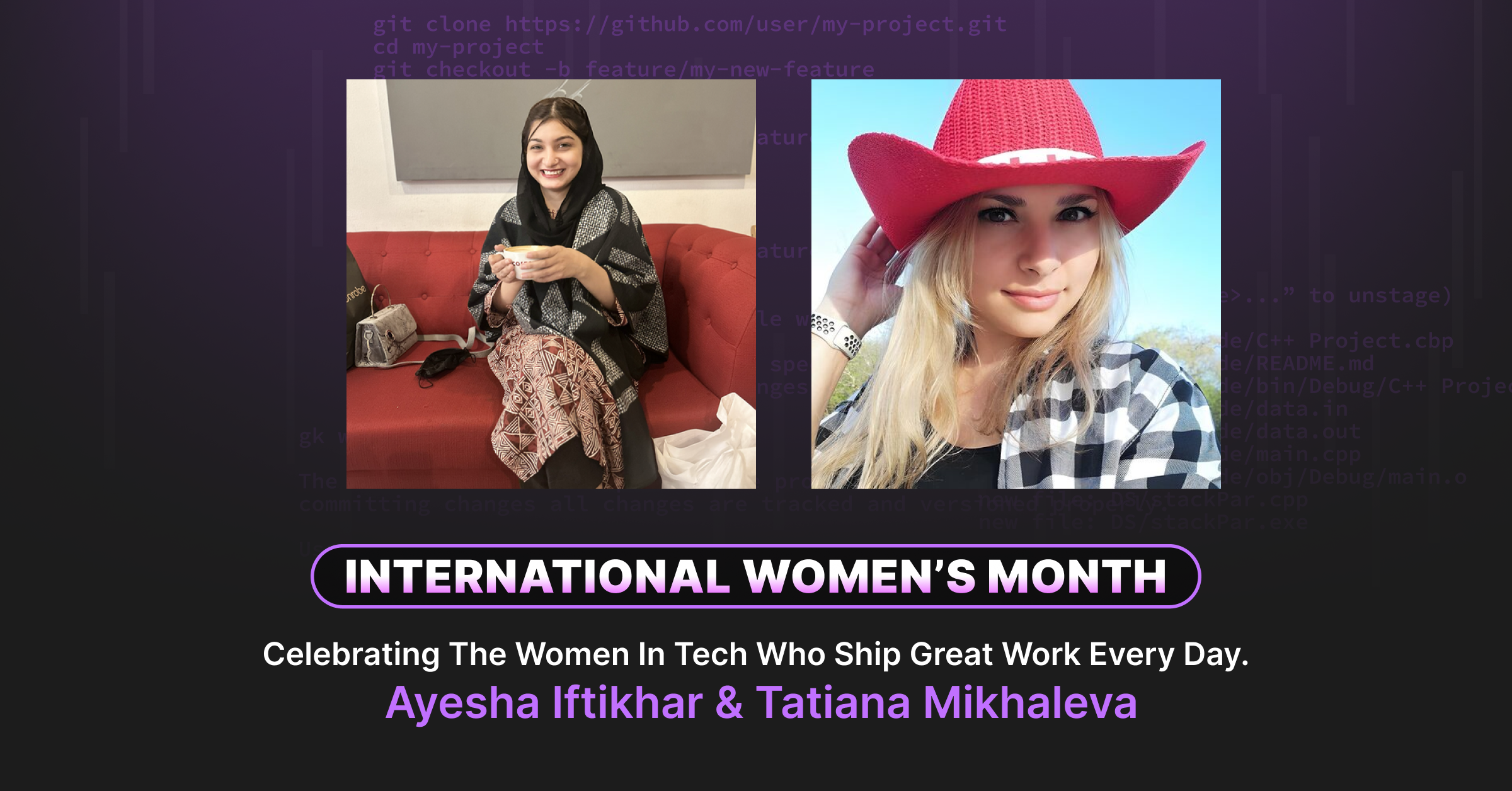 This International Women’s Month, we’re spotlighting developers from our community whose workflows are worth stealing. But the lessons from engineers like Ayesha and Tatiana aren’t relevant just one week a year, they’re principles that apply every time you commit code, resolve conflicts, or ship to production. We celebrate them this month. We learn from their work every day.