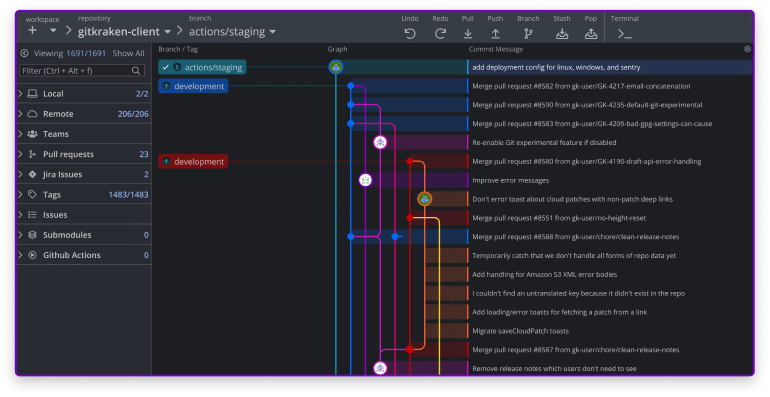 Millions of developers and teams around the world choose GitKraken Client. It has an ultra-intuitive GUI, a powerful terminal, and offers a seamless experience for Windows, Mac and Linux.