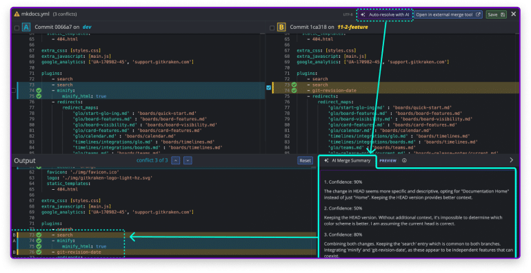 Dealing with merge conflicts can be a daunting task, especially if you’re relying solely on the command line interface. But with GitKraken Client’s built-in Merge Tool, you can tackle merge conflicts with confidence and ease.