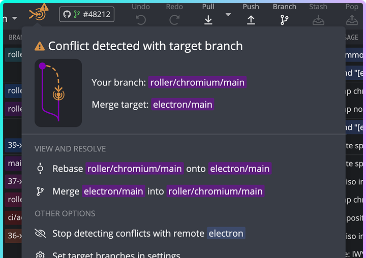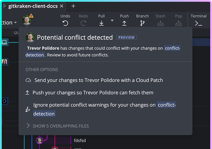 GitKraken Desktop proactively flags conflicts before you merge, reducing rework.