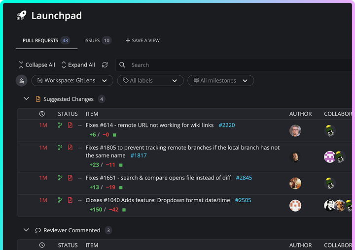 Launchpad – All your PRs, issues, & tasks in one spot to kick off a focused, unblocked day. Code Suggest – Real code suggestions anywhere in your project, as simple as in Google Docs. Cloud Patches – Speed up PR reviews by enabling early collaboration on work-in-progress. Workspaces – Group & sync repos to simplify multi-repo actions, & get new devs coding faster. DORA Insights – Data-driven code insights to track & improve development velocity. Security & Admin – Easily set up SSO, manage access, & streamline IdP integrations.