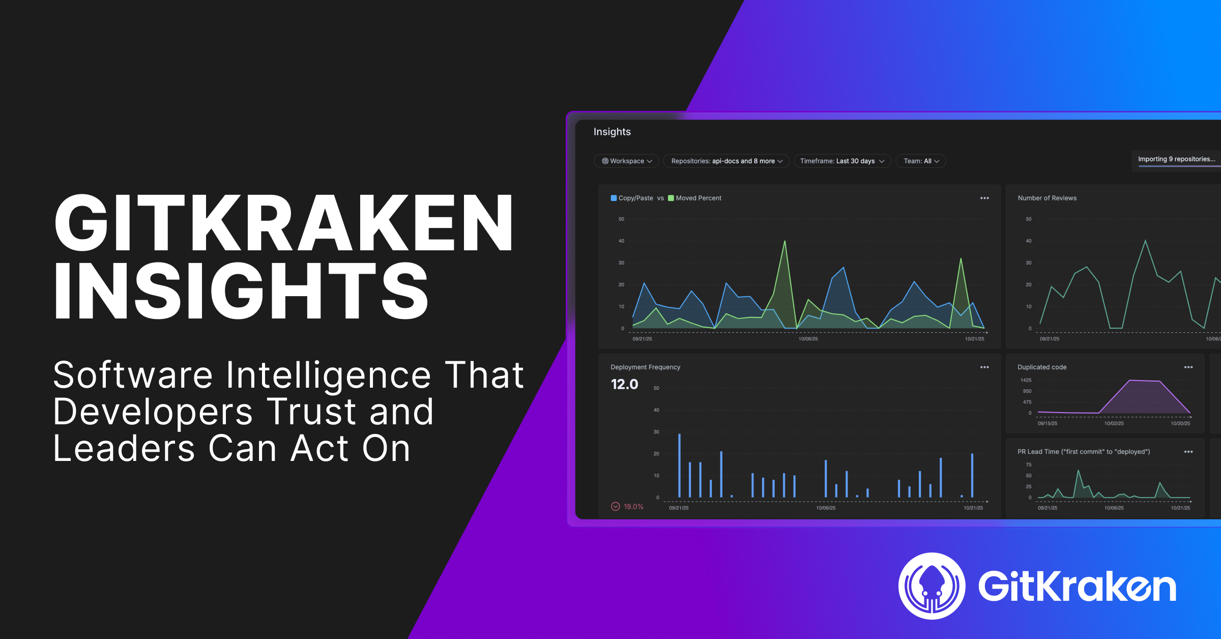 Today, we’re announcing GitKraken Insights—software engineering intelligence built to help engineering leaders measure and optimize AI’s true impact on developer productivity.