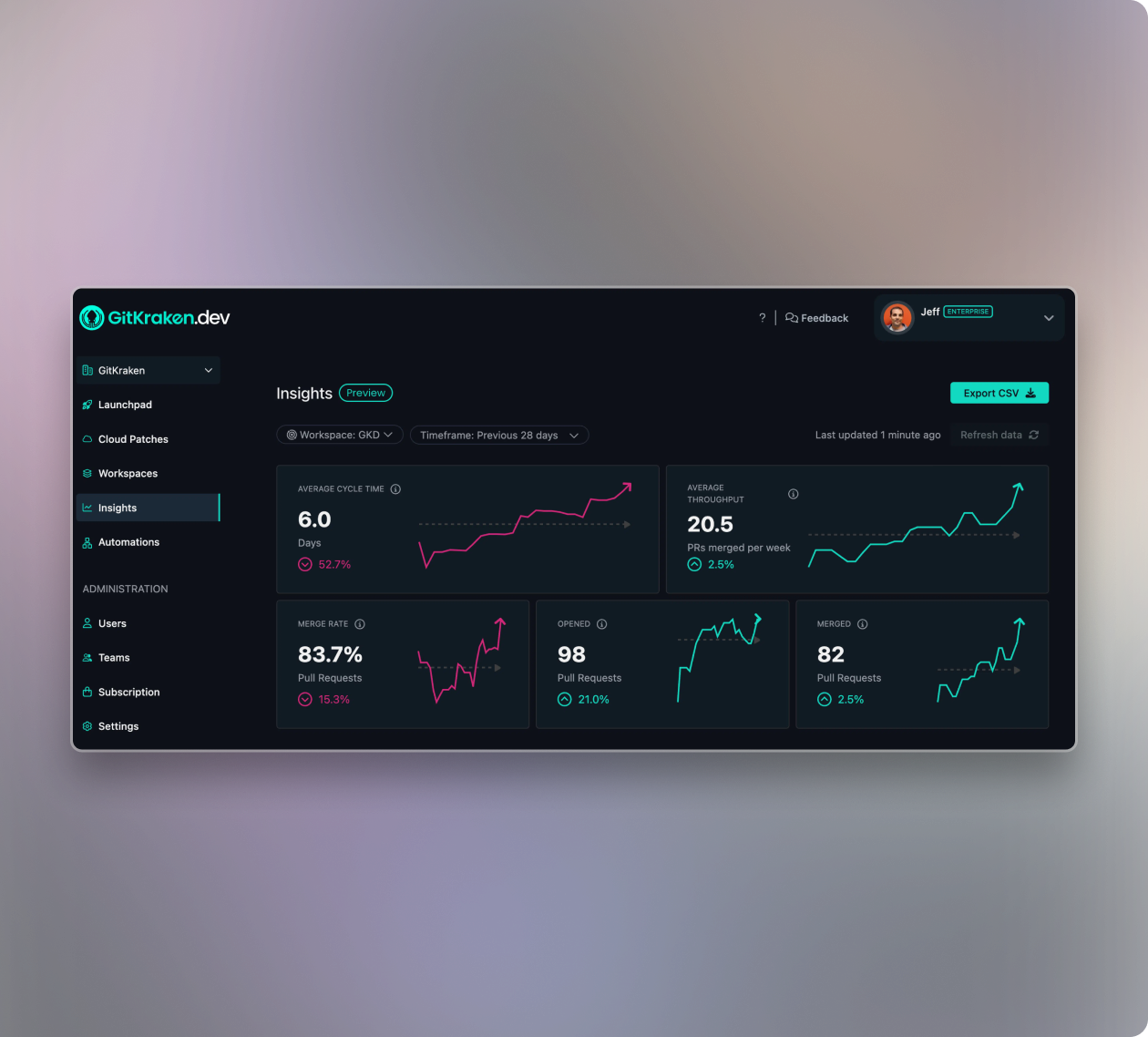 Measure cycle time, throughput, and PR bottlenecks with GitKraken Insights