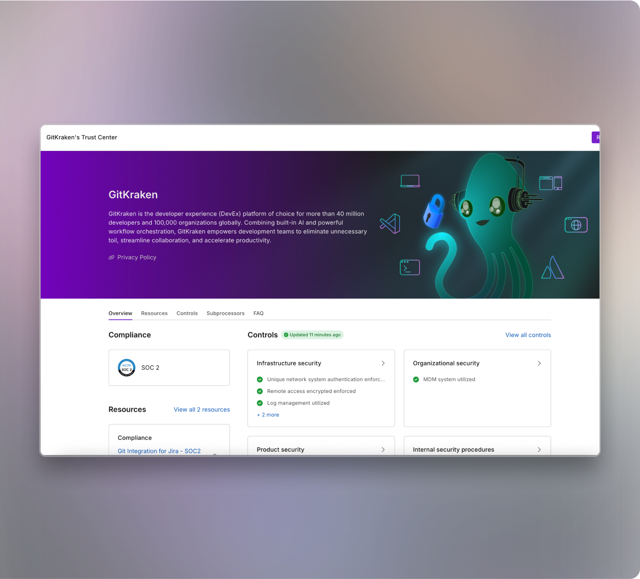 GitKraken demonstrates the most stringent security and data controls by actively participating in all Atlassian security programs.